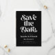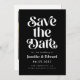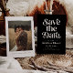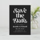 Retro und elegante Save the Date-Karte mit boho Schriftart, der auf schwarzem Hintergrund "Save the Date" in Weiß steht. Sie können ein Foto auf der Rückseite hinzufügen.