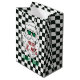 Retro Groovy Black and White Checkered Santa Claus Christmas Medium Gift Bag