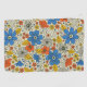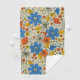 Dieses Handtuch ist mit einem Retro-Blumenmuster versehen, das Blume und Blätter in Orange-, Blau- und Gelbtönen enthält.