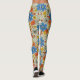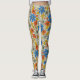 Diese Leggings haben ein Retro-Blumenmuster mit Blume und Blätter in Orange-, Blau- und Gelbtönen.