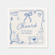 Retro-Blau handgezeichnetes illustriertes Brautpar Serviette
