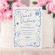 Feiern Sie Ihren süßen 16 Geburtstag im Stil mit unserem charmanten Retro Französisch blau und beige Geburtstag Einladung! Dieses handgezeichnet illustrierte, Vintage französische Design strahlt Eleganz und Lustigkeit aus. Freuen Sie sich auf zarte Schnörkel, scharfe Rahmen und eine faszinierende Auswahl an Speisen und Getränken, darunter Weingläser, Cocktails und köstliche Leckereien. Die herzerwärmenden Details und handgeschriebenen Schriftart fügen eine persönliche Touch hinzu, während die bearbeitbaren Farben es Ihnen erlauben, die Einladung perfekt an Ihr Geburtstagsthema anzupassen.