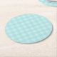 Retro blauer Gingham-karierter Muster-Hintergrund Runder Pappuntersetzer