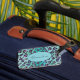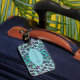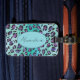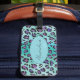 This sassy luggage tag features a striking leopard print design in a beautiful color palette of teal, aqua, black, and purple. The combination of these vibrant colors creates a bold and eye-catching pattern that adds a touch of personality and style to your travel routine.