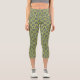 Retro Blue & Black Daisis auf grünem Blumenmuster Capri Leggings