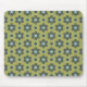 Retro Blue & Black Daisis auf grünem Blumenmuster Mousepad
