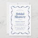 Mit diesem Retro Blue Bridal Shower Invitation, mit trendigen Wavy und Squiggle Details in einem modernen marineblauen, blauen Aquarell-Design, feiern Sie stilvoll. Die neugierige, minimalistische Ästhetik fügt eine spielerische und dennoch raffinierte Touch hinzu, die sich perfekt für ein stilvolles und elegantes Fest eignet. Wenn Sie Hilfe bei der Anpassung Ihrer Einladung benötigen, lass mir bitte Bescheid - ich würde Liebe, dir zu helfen!