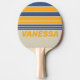 Retro Blue Crush Sunset Horizon Striping with Name Ping Pong Paddle captures the vibrant sweep of a sunset over calm waters, with horizontal patterns in deep blues and warm sunset hues that create a sense of movement and lively rhythm with each swing. Personalized with a name, it reflects your unique style and presence, adding a personal touch to every rally. Whether in spirited matches or relaxed games, this paddle brings color, energy, and a striking, dynamic presence to every moment on the table.