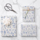 Retro Blue Doodle Weihnachtswrapping Paper Geschenkpapier Set