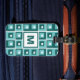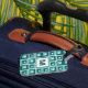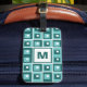 Retro Blue Geometric Squares Pattern Monogram Gepäckanhänger