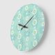 Diese niedliche Uhr ist mit einem coolen Retromuster in Blau-, Grün- und Orangetönen gefüllt. Das Muster umfasst Sternenstürme, Viertelmondformen und unregelmäßige Kreise.