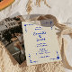 Treten Sie ein in eine Welt der Launen und Nostalgie mit unserem Retro Blue Handwriting Whimsical Wedding Theme. Dieses charmante Design vereint das Beste aus Vintager Inspiration und spielerischer Eleganz, um eine unvergessliche und bezaubernde Hochzeitsfeier zu schaffen. Die handgeschriebenen Elemente fügen jedem Detail eine persönliche Touch hinzu, die ein Gefühl von Wärme und Authentizität weckt. Die blauen Farbtöne erinnern an vergangene Zeiten und laden zum Verweilen ein. Von Einladungen bis Dekorationen, jeder Aspekt dieses skurrilen Hochzeitsthemas ist sorgfältig gestaltet, um Freude und Bezauberung. Ob Sie in einer rustikalen Scheune Gelübde austauschen oder unter dem Sternenhimmel tanzen, unser Retro Blue Handwriting Whimsical Wedding Set für eine Feier voller Liebe, Lachen und gepflegten Erinnerungen.
