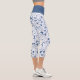 Diese niedlichen Capri-Leggings zeichnen sich durch ein zartes blaues Blatt-wirl-Design auf weißem Hintergrund aus. Ein blassblauer Schatten des Musters verleiht dem Hintergrund noch mehr Interesse.