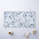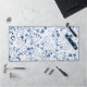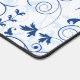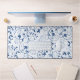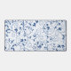 Diese hübsche Schreibtischmatte zeichnet sich durch ein zartes blaues Blatt-wirl-Design auf weißem Hintergrund aus. Ein blassblauer Schatten des Musters verleiht dem Hintergrund noch mehr Interesse. Ihr Monogramm ist auf einem weißen Kreis-Banner unten in einem Blau-Script.