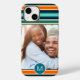 Retro Blue Orange Strip Monogram Custom Foto Case-Mate iPhone Hülle