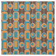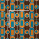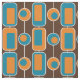 Orangefarbene und blaue Rechtecke und Kreise auf braunem Hintergrund werden durch Retromuster .