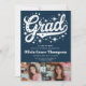 Retro Blue Script Stars 3-Foto Graduierungsparty Einladung