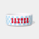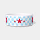 Erstellen Sie Ihre eigenen, personalisierten, fetten Weihnachten rot rustikalen Vintagen Western Drehbuch / Typografie individuelle Name vorne und hinten, mit drei Sternen in der Mitte und Retro cool chic stilvolle geometrische trendige hellblau karierte Karos Muster Hintergrund Schachbretter Muster, Keramik, Haustier Katze Hunde Hündchen Hündchen Welpen Futter Bowl. Geben Sie einfach den Namen Ihres Haustieres / Ihren Text ein, um ihn anzupassen. Ideal zum Geburtstag, Weihnachten, Ferien, neue Jahre und mehr, für Haustier Hund / Katze Besitzer, Freunde und Familie.