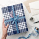 Retro Blue White Christmas New Year Tartan Kariert Geschenkpapier