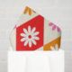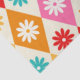 Dies ist ein niedliches Retro-Blume-Muster auf farbigen geometrischen Harlequin-Diamanten in Orange, Rosa, Rot, aquamarin und Mandarine.