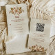 Diese trendige Hochzeitskarte bietet stilvolle Retro-Blume und Blätter in Vintagen, neutralen Farbtönen wie Braun, Beige, Gold, Olivgrün und Elfenbein mit Retro-Stil. Die Vorderseite der Karte ist eine eher traditionelle Antwort-per-Mail-Antwortkarte, während auf der Rückseite der Karte ein QR-Code und Ihre Hochzeitswebsite für Gäste, die lieber online UAWG.