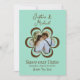 Retro Blume Foto Aquamarin und Braun Hochzeit Einladung