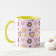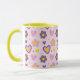 Retro-Blume Herz Muster rosa, Lila, gelb Tasse