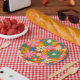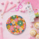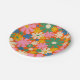Retro-Blume Mehrfarbiger 60er 70er Blumenmuster Pappteller