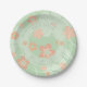 Retro Blume Niedlich Korallenrosa Grüner Frühling Pappteller
