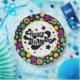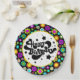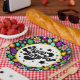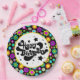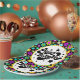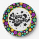 Eine farbenfrohe Retro-Party-Platte für Geburtstage, Gemustert in Retro-60er-Design.
