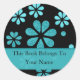 Retro-Blume Personalisierte Buchzeichen: Aquamarin Runder Aufkleber