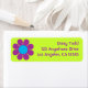 Pop Art Blume Power Adressetikett. Hintergrund- und Schriftart-Farben können individuell angepasst werden.