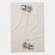 Retro Blume Pumpkins Denim Gnomes Erntedank Küchentuch. Ein zauberhaftes Trio aus Gnomen, das alle in ihrem besten Denim ausgekleidet ist, umgeben von Retro-braunen und Denim-Blume und Kürbissen.