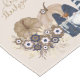 Retro Blume Pumpkins Denim Gnomes Erntedank Kurz Table Runner. Ein zauberhaftes Trio aus Gnomen, das alle in ihrem besten Denim ausgekleidet ist, umgeben von Retro-braunen und Denim-Blume und Kürbissen.