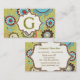 Niedliche Retro-Blume türkisblau-braune Blumenmuster kundenspezifische Monogramm Visitenkarten, mit einem schönen Muster abstrakter Blume in türkisblau mit brauner Kontur auf olivgrünem Hintergrund und Ihrem Monogramm in einem Elfenbeinrahmen. Ändern Sie den Text, um ihn zu personalisieren, und fügen Sie Ihren Namen oder Ihre Firma hinzu. Ein feminines, mädchenhaftes Blumendesign mit Vintagem Ambiente.