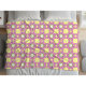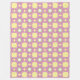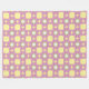 Handtücher mit einem retro-blumigen Muster hängen an einer Stange. Das Design zeigt gelbe Kreise auf Rosa, akzentuiert durch sternförmige Formen, die eine spielerische Vintage-Atmosphäre vermitteln.