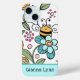 Kommunizieren Sie im Stil mit dieser individuell anpassbaren iPhone-Hülle mit einem trendigen, retro-style Blumenmuster und einer verspielten Hummel. Inspiriert von den kühnen Mustern, die in den 1960er und 1970er Jahren beliebt waren, kombiniert dieses Design fröhliche Farbtöne in Aquamarin, Rosa und Gelb mit kühnen Umrissen und stilisierten Blumen. Eine freundliche Biene verleiht diesem Design eine spielerische Note. Passen Sie den Namen an, um ein einzigartiges Zubehör für Ihr Mobiltelefon zu erstellen oder ein besonderes Geschenk für einen Geburtstag, einen Feiertag oder einen anderen besonderen Anlass zu erhalten. Perfekt für Frauen und Mädchen, die Vintage-Design lieben.