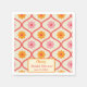 Feiern Sie Liebe mit zeitlosem Stil mit diesen personalisierten Hochzeitsshower-Servietten mit einem charmanten, retro-blumigen Ogee-Muster. Entworfen mit rosa und orangefarbenen Blumen, eingebettet zwischen kräftigen roten Ogee-Formen auf einem warmen beigen Hintergrund,