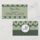 Retro Blumen-Seegrün mit Streifen und Monogramm Visitenkarte