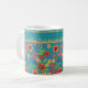 Eine schicke Coffee-Tasse, die individuell gestaltet werden kann, mit zwei hübschen, blumengeschmückten Mini-Printmustern auf aquamarinem Hintergrund. Dieses Design ist Teil der Posh & Painterly 'Granny Print' Kollektion und kann leicht an jede Tasse angepasst werden.