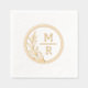 Retro Blumendesign von Foil Stamps Napkins mit Monogrammen. Hochzeitsserviette mit zwei Monogrammen und Kranz.