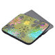Neoprenhülse für Ihren Laptop- oder Notizbuchcomputer hat ein Hippiemuster mit retro Blumen, Kreisen und Wirbel im Türkis, im Gelb, im Rosa und im Holzkohlengrau auf einem Hintergrund des olivgrünen Grüns. Klicken Sie an "besonders anfertigen sie!" zu mit Ihrem eigenen Namen oder Text personifizieren. Verfügbar in 3 Größen. © wenig Flügel-Fotografie u. Entwurf