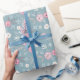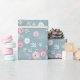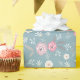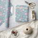 Retro-Blumenmuster. Rosa und weiße Blumen auf einem gedämpften graublauen Hintergrund.