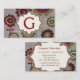 Niedliche Retro-Blume rot, grün graue Blumenmuster kundenspezifische Monogramm Visitenkarten, mit einem schönen Muster abstrakter Blume in Rot, Grün auf grauem Hintergrund und Ihr Monogramm in einem Elfenbeinrahmen mit brauner Kontur. Ändern Sie den Text, um ihn zu personalisieren, und fügen Sie Ihren Namen oder Ihre Firma hinzu. Ein feminines, mädchenhaftes Blumendesign mit Vintagem Ambiente.
