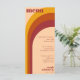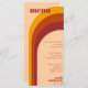 Klassische Retrofarben aus Vintagem 70er mit gewölbten gewölbten Gewölben, gestreift Linien Hochzeitsempfang. Cooles Design mit Hippie-Farben Creme, Orange und Rot. Personalisieren Sie es, indem Sie den Namen der Braut und des Bräutigams, das Datum der Hochzeit und eine Menüliste hinzufügen.