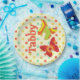 Ein Design aus den 70er Jahren mit stilisierten Schmetterlingen auf einem Polka Dot Hintergrund. Personalisieren Sie mit Ihrem Namen. In den 70er Jahren Retro-Farben Orange, Grün, Gelb und Blau.
