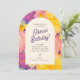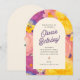 Celebrate in style with this vibrant floral arch birthday invitation! Featuring bold retro-inspired flowers in warm pinks, oranges, and purples, this cheerful design sets the tone for a fun garden party, spring birthday, or summer celebration. Personalize with your event details for a unique, memorable invite.