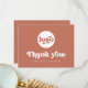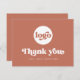 Business Dankeschön-Karte mit dem Text "Danke" in einem Retro-Stil Schriftart. Weißer (oder benutzerdefinierter) Text auf Terracotta-braunem Hintergrund. Laden Sie Ihr Logo auf der Vorderseite hoch und fügen Sie auf der Rückseite einen benutzerdefinierten Text hinzu. Mit dem Designwerkzeug können Sie Farben ändern, Elemente verschieben und verändern.