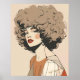 Stilvolle Retro-Damenillustrierung mit kühnen Vorgängen und modernen Boho-Schwänzen. Perfekte minimalistische Wandkunst für Modeliebhaber, Wohngestaltung oder besondere saisonale Geschenke. Ein elegantes Design, das Vintagen Flair mit modernem Stil verbindet.