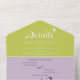 Retro boho lila Drehbuch-Hochzeit All In One Einladung